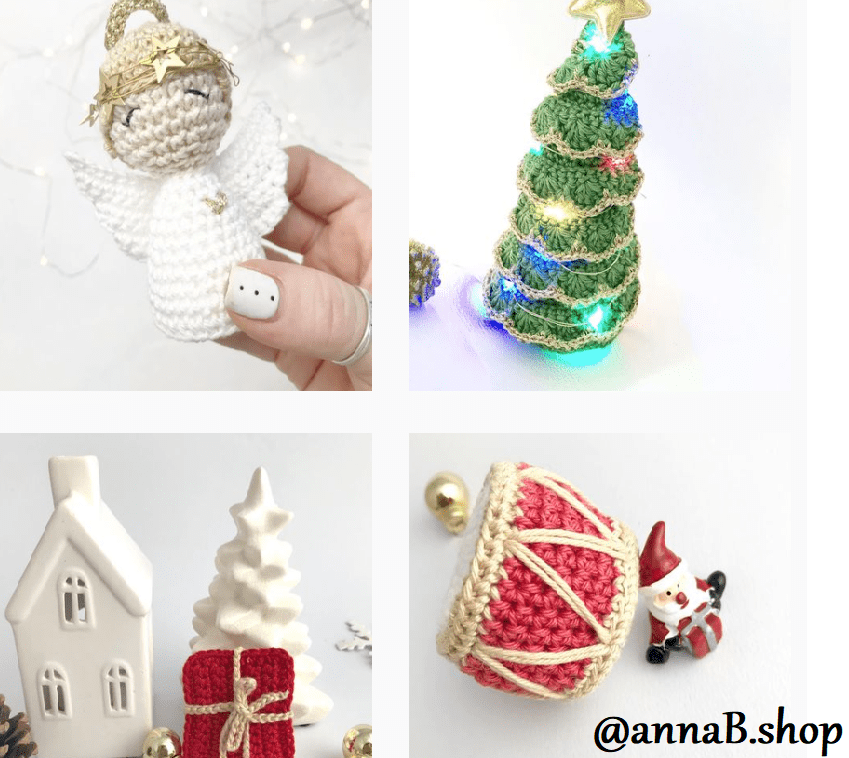 Pleins de décorations pour votre sapin ou votre maison vous sont proposés par cette talentueuse créatrice. Certains tutos sont gratuits et d’autres payants, ils sont pour la plupart pour un niveau débutant. Un nouveau calendrier de l’avent sera disponible cette année donc n’hésitez pas à suivre @annaB.shop sur les réseaux !