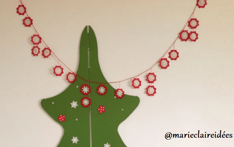 C’est le magasine Marie Claire qui nous propose une jolie guirlande de Noël flocon rouge et blanche. Parfait pour les fenêtres ou le sapin.