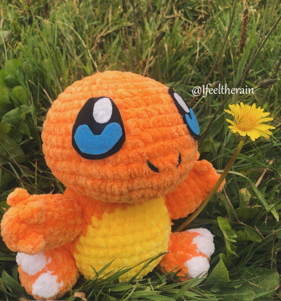 Et puis 1 de mes collègues m’a demandé il y a quelques mois de lui réaliser un Pokemon Salamèche en crochet pour son petit-fils. Et j’étais tombée sur la page insta de Soulmate Crochet quelques jours auparavant où j’avais vu un superbe modèle en français.